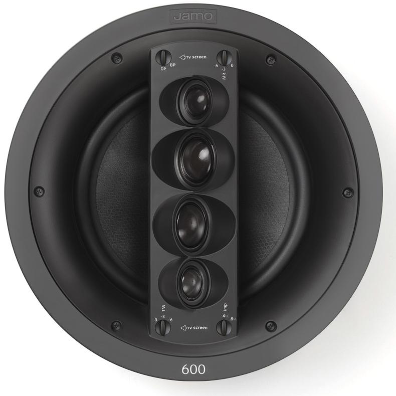 Jamo IC 610 SUR – 3-х полосная встраиваемая АС предназначенная для монтажа в потолок, состоит из 2-х ВЧ диффузоров (25 мм), выполненных из шёлка по технологии DTT®, 2-х СЧ диффузоров (38 мм) из шёлка и НЧ диффузора (254 мм) из стекловолокна. Подаваемая мощность: 100 Вт - 200 Вт ( пик).