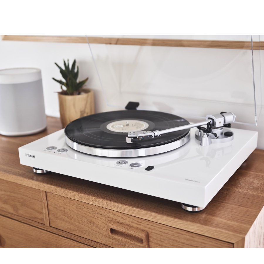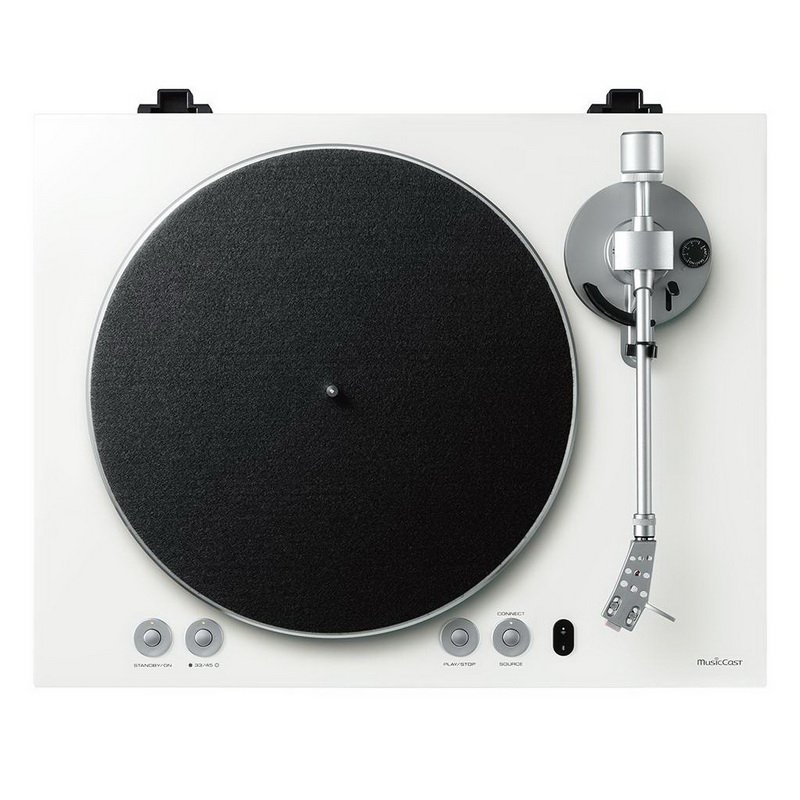 У проигрывателя Yamaha MusicCast VINYL 500 пассиковый привод, а диск вертится на скоростях в 33,3 и 45 оборотов. Сам диск — алюминиевая штамповка. Вертушка комплектуется прямым тонармом на 9 дюймов с MM-картриджем. Стол покрыт черным лаком, сама вертушка установлена на четырех виброразвязывающих ножках. Для поклонников проводов предусмотрены RCA-выходы (фонокорректор встроенный, отключаемый).