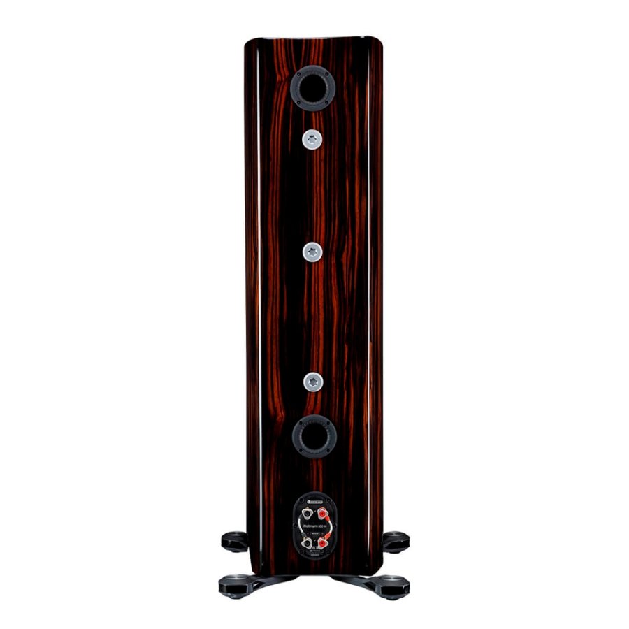 Напольные колонки Monitor Audio Platinum 300 3G входят в обновленную серию этой фирмы, модели в которой оснащены самыми передовыми технологиями, а также они построены на фирменных динамиках, использующих технологии RDT и MPD третьего поколения. Monitor Audio выбрали слоганом для новой линейки сочетание «Objects of Desire», что можно перевести как «Объект желания». И в самом деле, эти модели с первого взгляда разбудят страсти большинства аудиофилов. Micro Pleated Diaphragm III – это излучатель Хейла или Air Motion Transformer. Его преимущества – меньшая хрупкость, благодаря своего рода рёбрам жёсткости характерной «гармошки», и более высокая эффективность за счёт большей поверхности излучения при равных габаритах. В акустических системах такого уровня мелочей не бывает. На этапе разработки тщательно отбираются и тестируются все элементы, включая компоненты разделительных фильтров, на предмет их способности к перегрузкам и минимизации искажений. С позиции механической стабильности, решено было «убить сразу двух зайцев». Не только улучшить виброразвязку корпуса в целом, но и разместить в его опоре разделительный фильтр. Ведь микрофонный эффект никто не отменял! C-CAM – инновационный сплав, изначально разработанный для аэрокосмической отрасли. Диффузор из C-CAM обладает идеальными качествами, будучи чрезвычайно жёстким, но достаточно лёгким. Сплав алюминия и магния при производстве C-CAM подвергается процессу снятия внутренних напряжений, чтобы избежать деформации поверхности и понижения прочности. На поверхность наносится слой чистой керамики (корунд), диффузоры имеют высокую стойкость изгибу. После формовки материал С-САМ обеспечивает повышенную чёткость и сниженное искажение сигнала по сравнению с обычными диффузорами. Rigid Diaphragm Technology III – это диффузор в виде сэндвича, где на основание из сотового арамида Nomex снаружи наносится C-CAM (сплав алюминия и магния с керамическим покрытием), а внутри — два слоя углеволокна с перпендикулярно ориентированными волокнами. Также изменения внесены в кромку диффузора и конструкцию подвеса, в результате новые динамики обладают рекордно низкими искажениями за всю историю компании Monitor Audio. Изготовлен из панелей МДФ сложного профиля, образующих изогнутый усиленный жёсткий корпус толщиной 18-21 мм с перегородками толщиной 36 мм. Верхняя панель украшена гравированной вставкой. Финишная отделка – 16 слоёв лака. Вместо единой плиты теперь используются четыре массивных алюминиевых ножки на стальном основании. Казалось бы, элементарная деталь? Но только не в случае Monitor Audio! Здесь каждая ножка собрана из десятка элементов. Возможна индивидуальная регулировка высоты шипов или их демонтаж, если вы предпочитаете встроенные резиновые упоры.