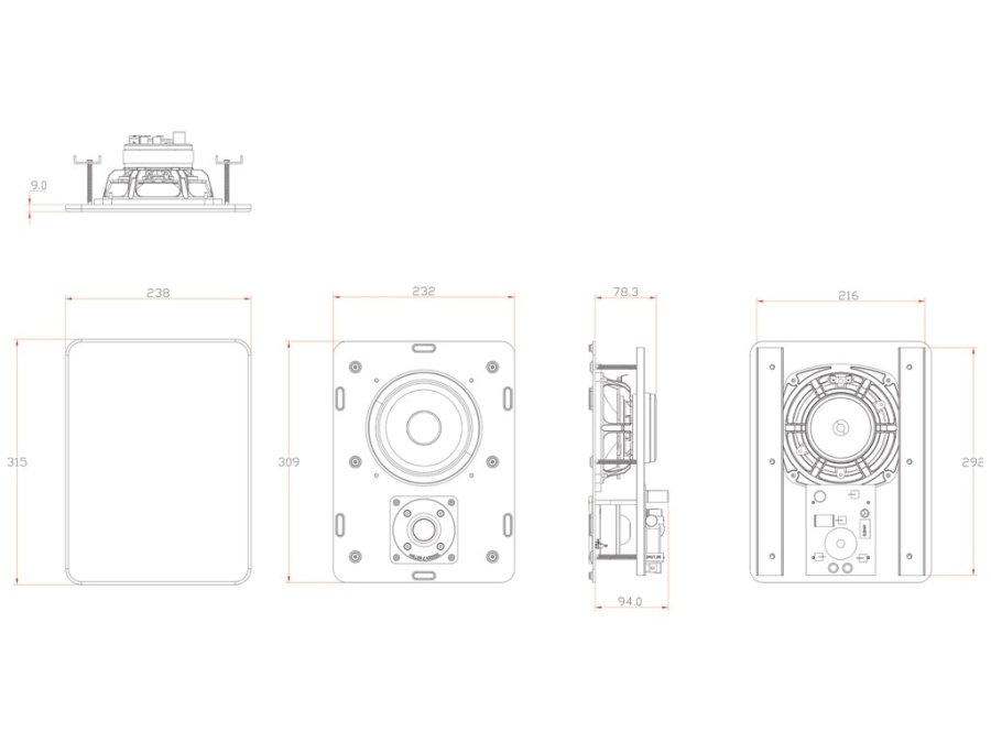 Встраиваемая двухполосная АС. 1-дюймовый мягкокупольный твитер. 6,5-дюймовый СЧ/НЧ полипропиленовый драйвер. Диапазон частот 80 Гц - 20 кГц. Рекомендуемая мощность 25-300Вт. Чувствительность 91дБ, 2.83V1m. Сопротивление 4 ома. Размеры (ШхВхГ): 232х309х93 мм. Размер монтажного выреза (ШхВхГ): 189х273х93 мм. Вес: 4,6 кг. Металлический квадратный гриль под покраску. Цвет: Белый.